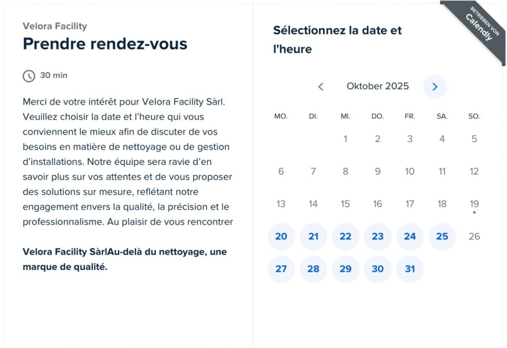 Velora est une société suisse de facility management et d’entretien de sites s’adressant à des particuliers et entreprises. Notre mission est claire : préserver la qualité de votre image et de votre confort par un travail impeccable, exécuté avec méthode et rigueur.